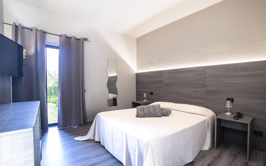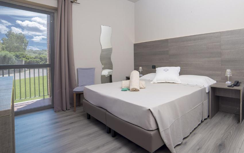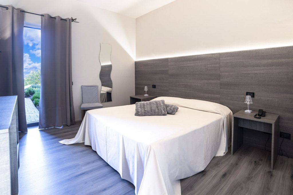 Die Zimmer des Sardegna Termale sind mit Sorgfalt und Liebe zum Detail ausgestattet, zudem wurden sie vor kurzem einem vollständigen Restyling unterzogen, um unseren Gästen eine noch komfortablere und gemütlichere Atmosphäre zu verleihen. Unsere Zimmer sind Ihr Relax-Bereich. Die wunderschönen Zimmer des Hotels Sardegna Termale befinden sich im Erdgeschoss und im ersten Stock des Gebäudes und bieten den Gästen einen hohen Standard, beginnend bei den großzügigen Räumen. Ganze 30 Quadratmeter stehen Ihnen für Ihren Komfort zur Verfügung, die warmen und einladenden Farbtöne inspirieren sich an der Natur und dem Wasser. Einrichtung mit klaren und minimalen Linien