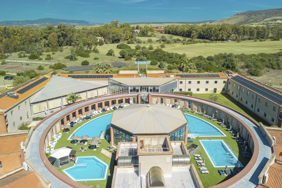 Il Sardegna Termale Hotel & Spa dispone di quattro piscine termali, una interna di forma circolare ed tre esterne, una molto ampia, a ferro di cavallo con postazioni idromassaggio e giochi d’acqua distribuiti lungo il loro sinuoso perimetro, una con soli idromassaggi e giochi d’acqua e una pool bar .